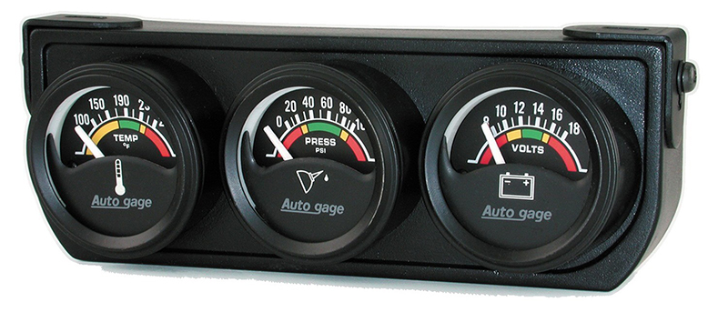 Auto gage series gauges come in popular sizes, single or multiple consoles, two colour schemes, black face with white accents and white face with black accents, and some with chrome trim. These gauges offer many economical options for street and street performance vehicles. Their electric gauges use a new rugged air core meter movement for maximum accuracy and quick response.