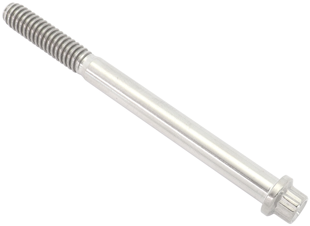 Aeroflow Performance Titanium 12 Point Head bolts, studs and nuts are machined from 6AL-4V grade 5 Titanium and the small head design is ideal when fitting into a recess or tight areas to give maximum clearance. These titanium bolts are the favored material for a fastener due to the attractive property of being a low-density metal, which has a higher tensile strength than many other materials, even in higher temperatures. Given this strength, titanium is remarkably light. When compared to steel in a strength-to-weight ratio, titanium is far superior, as it is as strong as steel but 45% lighter. In fact, titanium has the highest strength-to-weight ratio of all known metals. The pairing of their high strength to weight ratio, excellent resistance to stress corrosion cracking, high corrosion resistance and good fatigue strength make it the best choice to have in your race car. Each bolt is sold individually and available in a variety of threads and lengths to choose from.