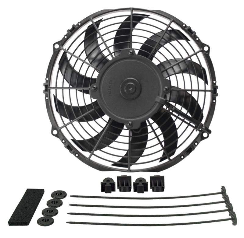 A 10″ Diameter version of our high performance H.O. Extreme series of electric fans, this powerful unit uses 10 thin, curved blades to provide a low profile (only 2 1/16″ at widest point) for limited space applications. Using a sealed IP68 certified waterproof & dustproof motor that lasts up to 3 timeslonger than normal electric fan motors, this puller fan isdesigned to provide maximum performance at high static pressure loads. Mounting kit and installation instructions included.