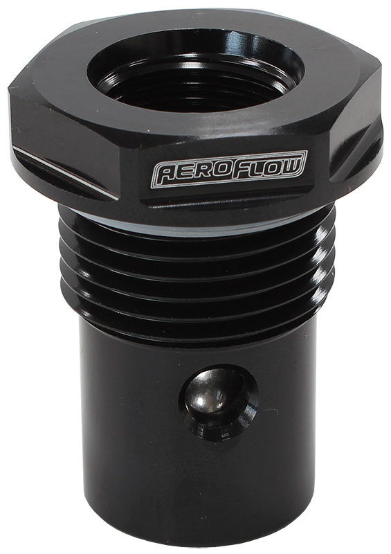 Aeroflow’s Universal roll over valve can be screwed directly into an Aeroflow Fuel cell that has a -12 female thread. The top of the valve has a -8 ORB female thread and a stainless steel ball. It can be used with the AF996-12D, AF996-12S and AF996-12SS weld on or an AF924-12 Bulk Head nut with a choice of any -08 ORB to suit any plumbing solution. When the fitting is screwed into the top of the roll over valve it locks the ball.