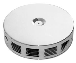 14″ x 3″ paper filter element with chromed steel top and chrome steel base. Fits single 4-barrel carburettors with 5-1/8″ neck. Polished steel mounting stud included