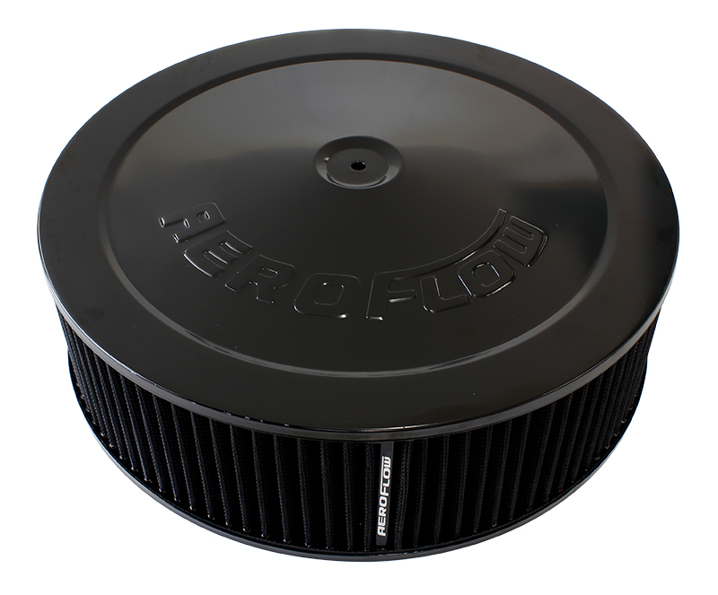 Stand out from the crowd with a magnificent looking Aeroflow air cleaner. These air cleaners are stamped from high quality steel. Available in many different great finishes and styles for that custom look you are after. Chrome-plated or black finish with reusable/washable or paper elements. Aeroflow air filter assemblies work with all popular standard 4150 (5-1/8″” / 130mm) carburettors and 4500 Dominator (7-5/16″” /186mm) carburettors. The 14″” (355.60mm) air filter assemblies come with a drop base that sits 1-1/8″” (28mm) below the carburettor.