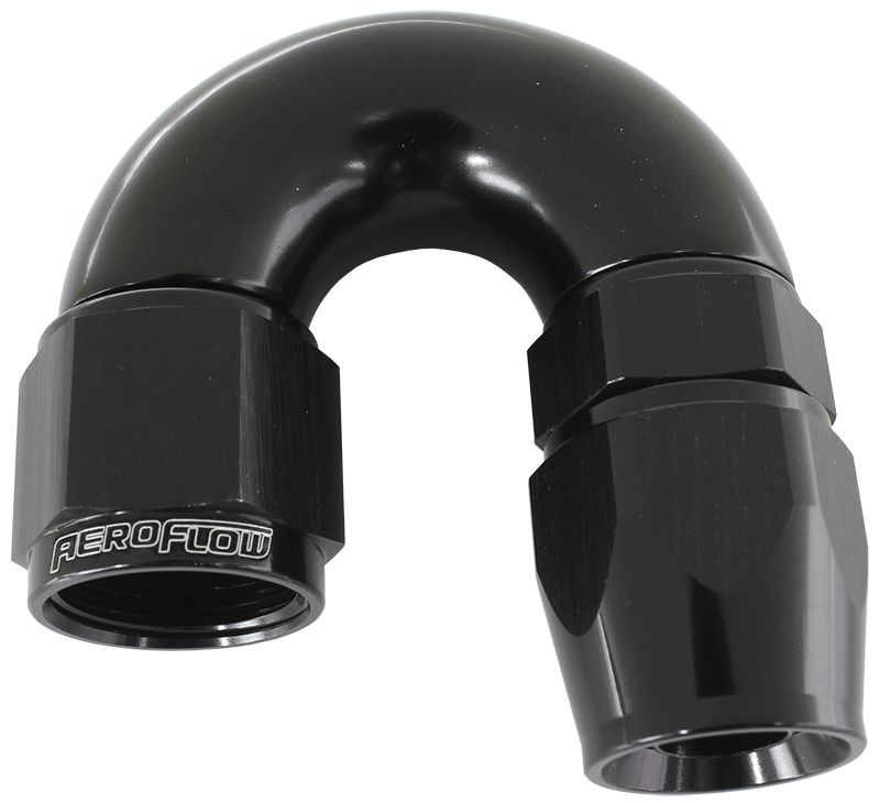 180 DEG -4AN FULL FLOW TEFLON HOSE END BLACK 1 PIECE FULLFLO