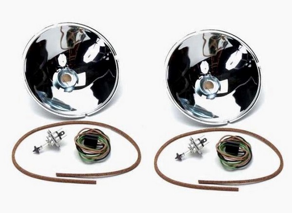 1932 HALOGEN REFLECTOR KIT H4 BULBS BRASS DIE STAMPED PR