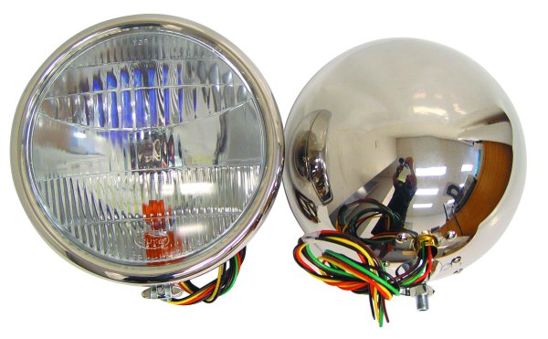 Show Quality stainless steel headlamps. Lenses and the top of the headlamp housing have the Ford script logo as original and are licensed by ford motor company as an official licensed restoration product. These headlamps feature 9-1/4″ diameter brass chrome plated reflectors, bulbs, correct glass lenses, lens gasket, wiring, mounting nuts and a superb right polished finish. boxed in complete pairs. All quartz halogen kits come complete with 12V halogen globes installed