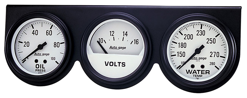 Auto gage series gauges come in popular sizes, single or multiple consoles, two colour schemes, black face with white accents and white face with black accents, and some with chrome trim. These gauges offer many economical options for street and street performance vehicles. Their electric gauges use a new rugged air core meter movement for maximum accuracy and quick response.