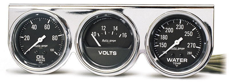 2-5/8 3 GAUGE CONSOLE, OIL/WA OIL/VOLT/WATER IN CHROME CONS