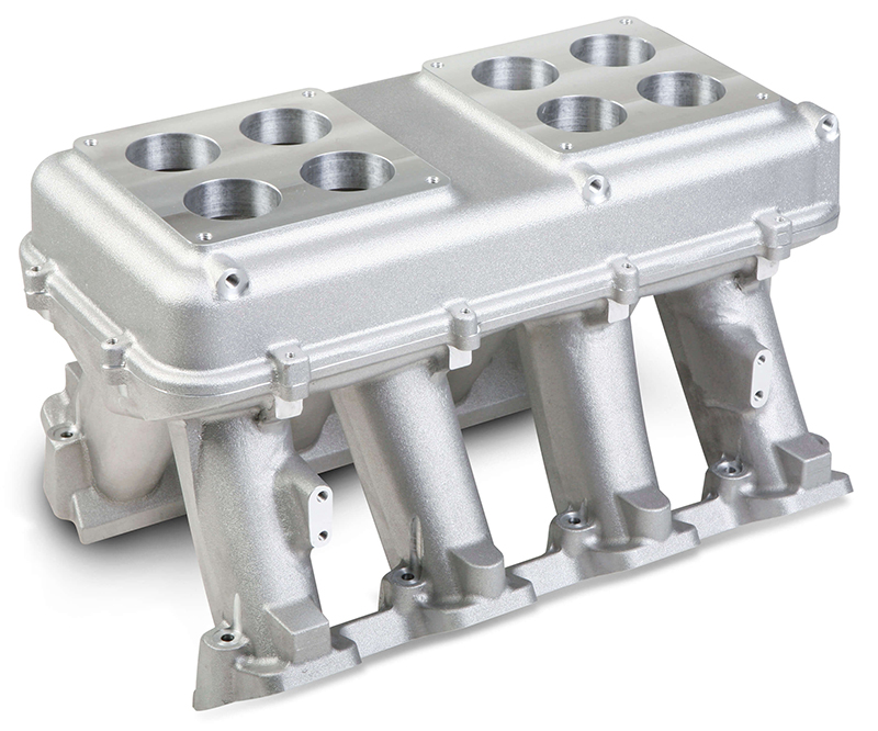 The base is designed to be modular in configuration to accept a widerange of carburetted and EFI tops and to be attractive to builders and fabricators as the foundation for custom induction systems.
