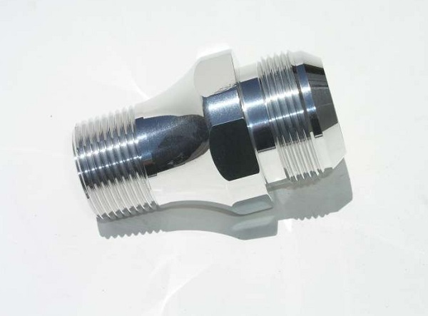 Standard 1″ National pipe male on one end and #20 AN male on the opposite end.