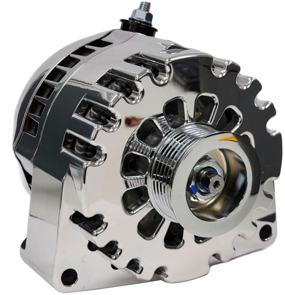 The S series of 6 phase alternators offers incredible output in a compact and durable package. 12 diodes, (instead of the normal 6 diodes) and twin rectifier plates with outstanding airflow ensure long service life, even in severe conditions. A side output stud and seamless rear cover with a side output plug allow for better clearance from the back of the alternator to the front of the engine and a smooth appearance.