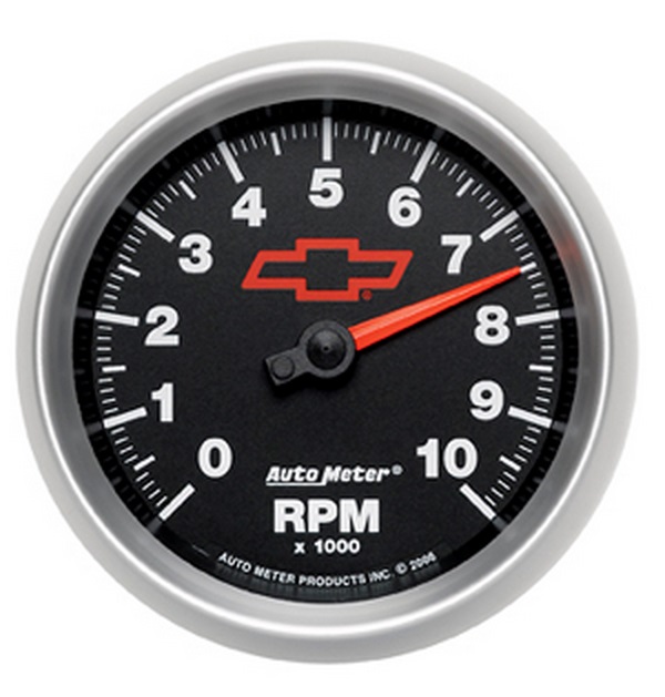 3-3/8″ IN DASH TACH 10,000RPM BLACK FACE, GM CHEVY BOWTIE
