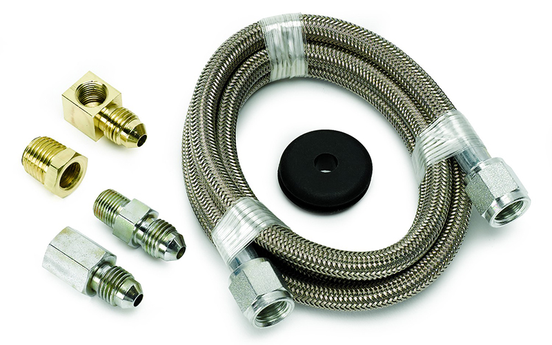 Includes 6ft. of -4AN braided stainless steel line, firewall pass through grommet, 1/8″ NPT female right angle to -4AN male fitting, -4AN male to 1/8″ NPT male fitting, -4AN male to 1/8″ NPT female fitting, 1/8″ NPT to 1/4″ NPT adapter bushing.