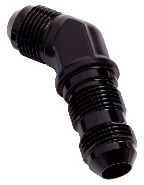 These 45 degree AN bulkheadfittings allow you to easily and safely run you fuel/oil/water lines through apanel or firewall without worrying about rubber grommetsand wearing through the hose. With male AN flare fittings available in sizes from -3 allthe way through to -20.