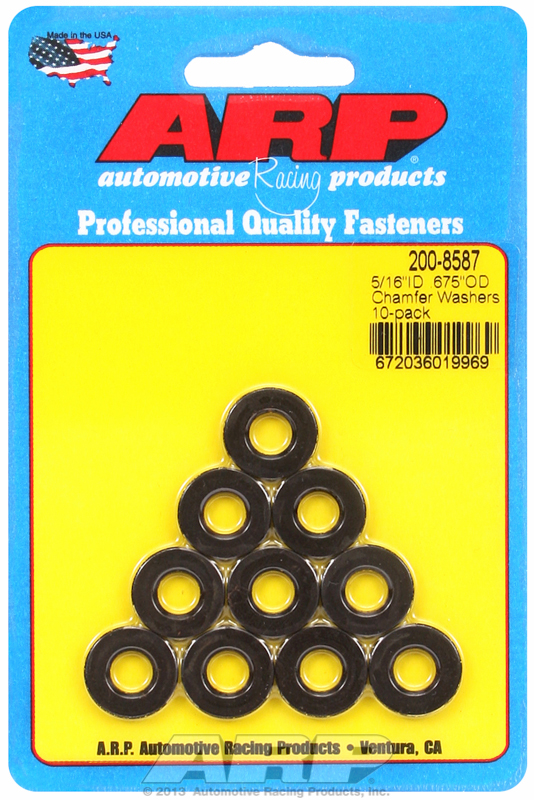 A true high performance washer from ARP, available in a variety of sizes and thicknesses, and with or without I.D. (inside diameter) chamfers. Our washers are constructed from either premium chrome moly with a black oxide finish or polished ARP stainless steel and are hardened.
