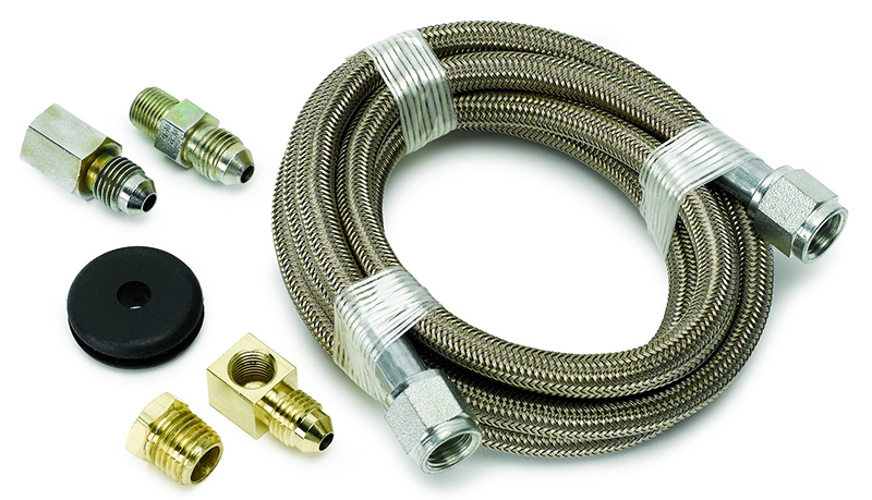 Includes 6ft. of -4AN braided stainless steel line, firewall pass through grommet, 1/8″ NPT female right angle to -4AN male fitting, -4AN male to 1/8″ NPT male fitting, -4AN male to 1/8″ NPT female fitting, 1/8″ NPT to 1/4″ NPT adapter bushing.