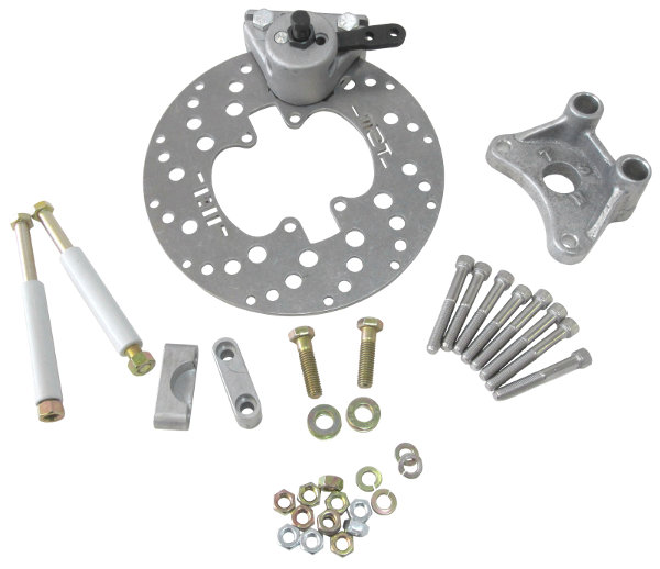 This emergency brake kit iseasy to install. Mechanically activated assembly is completely independent from your main braking system. Eachkit includes pinion mounted rotor assembly, mechanical Airheart 175 style caliper, girdles, handle, an adjustablelength emergency brake cable and all necessary hardware.