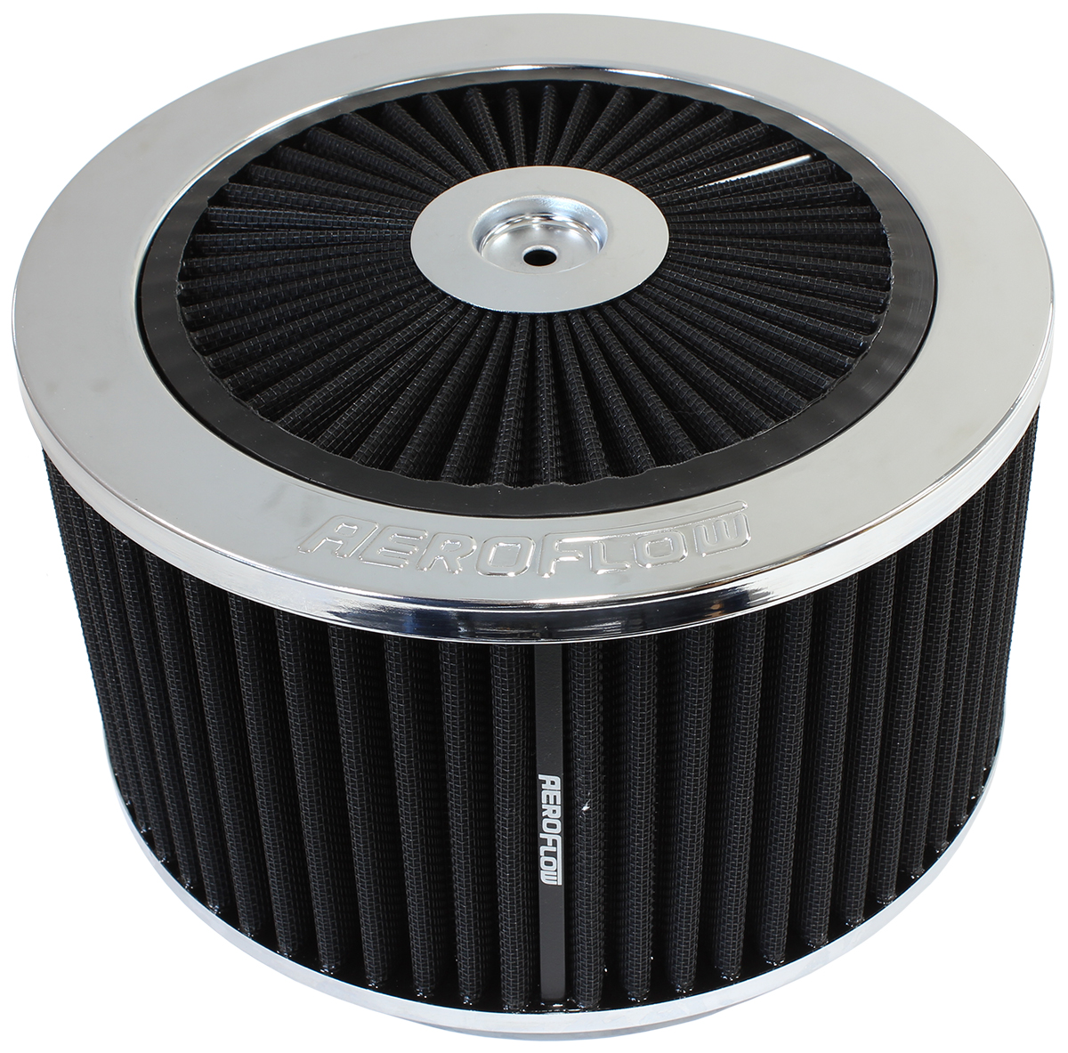 Stand out from the crowd with a magnificent looking Aeroflow air cleaner. These air cleaners are stamped from high quality steel. Available in many different great finishes and styles for that custom look you are after. Chrome-plated or black finish with reusable/washable or paper elements. Aeroflow air filter assemblies work with all popular standard 4150 (5-1/8″ / 130mm) carburettors and 4500 Dominator (7-5/16″” /186mm) carburettors. The 14″ (355.60mm) air filter assemblies come with a drop base that sits 1-1/8″ (28mm) below the carburettor.