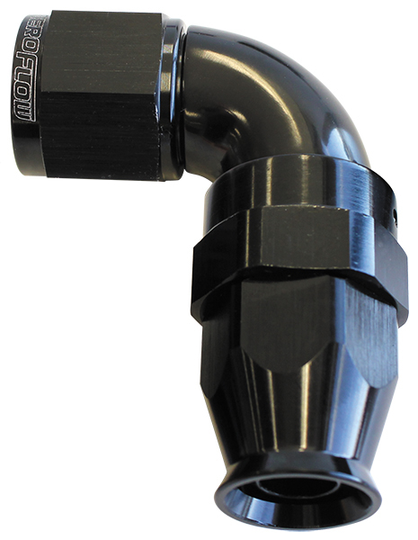 90 DEG -6AN FULL FLOW TEFLON HOSE END BLACK 1 PIECE FULLFLO