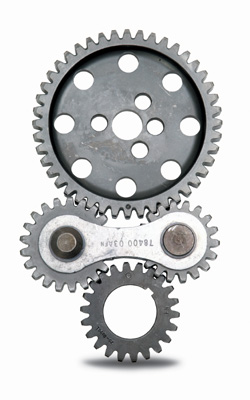The Accu-Drive camshaft gear drive kit replaces a stock timing chain with a precision gear drive system. The gear drive can be easily installed. Just replace the stock crank and camshaft sprockets with Accu-Drive gears and slip in the idler assembly. Most Accu-Drives require no modifications to the engine block, although some fitting of the axles and front cover may be required.