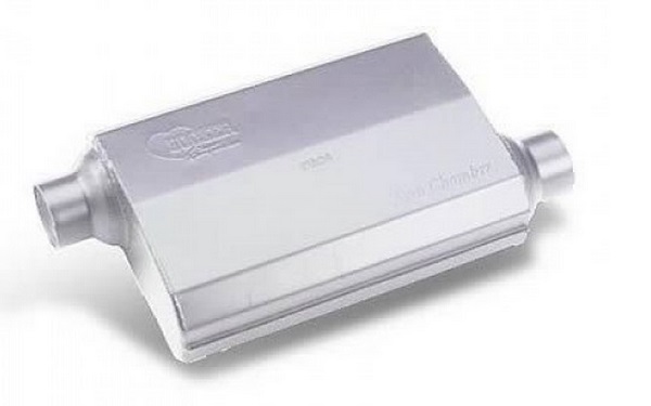 The raw aluminized steel Aero Chamber is designed to domuch more than simply muffle exhaust noise. The Aero Chamber Muffler produces a deep throaty powerful sound that will not change with time. The Hooker Aero Chamber uses a unique step principal, similar to that which is currently popular in racing header design. The aerodynamically designed chambers flow 23% better and produce more horsepower and torque than the most popular high performance brand.