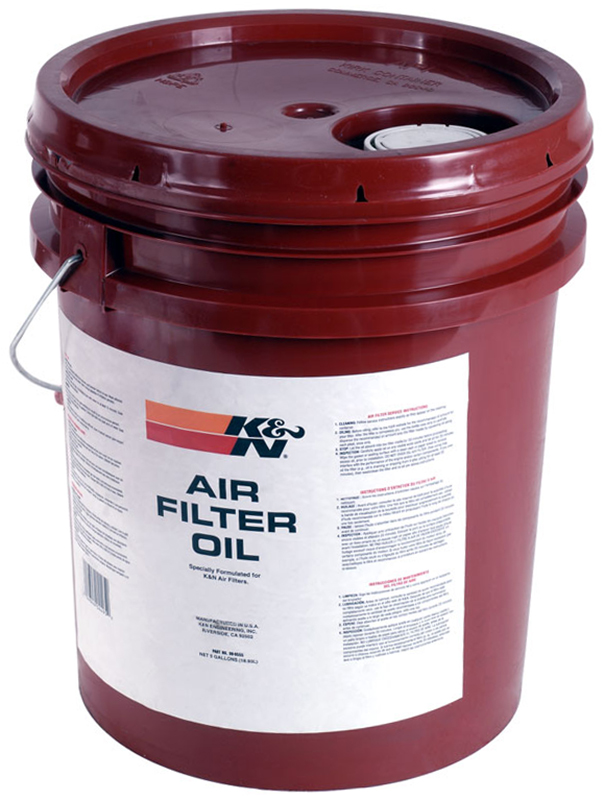 K&N 99-0555 is a 5 US gallon container of air filteroil. K&N Air Filter Oil is theonly oil specially formulated to work in combination with the cotton fabric in K&N air filter elements providing a superior air filtration system. When used as directed,it quickly penetrates the filter pleats, where it remains suspended in the cotton fabric. Saturation is maintained until the element is cleaned with K&N Air FilterCleaner.