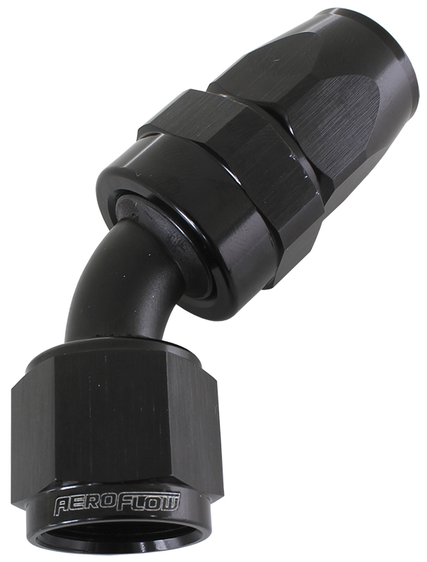 ALLOY 45 DEG HOSE END -10AN BLACK FULL SWIVEL SUIT TEFLON