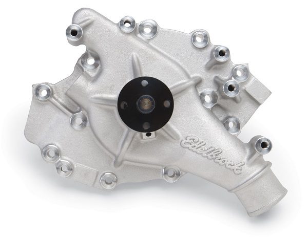 Edelbrock Victor Series water pumps provide maximum cooling for the street and the race track. They’re ideal to prevent overheating in street rods and street machines, as well as in tow rigs and motor homes. Using state-of-the art racing technology, Edelbrock has designed these “super cooling” water pumps to provide maximum flow, maximum pressure and equal distribution to both sides of the engine block within 1%. Available for most popular applications, these high-performance pumps flow in only one direction for optimum efficiency. The casting’s computer-designed internal passages and precision powdered metal impeller produce the maximum flow rate possible. Standard and reverse rotation pumps are available for most Chevrolets, Fords, and Chryslers.