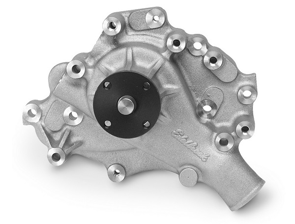 Edelbrock Victor Series water pumps provide maximum cooling for the street and the race track. They’re ideal to prevent overheating in street rods and street machines, as well as in tow rigs and motor homes. Using state-of-the art racing technology, Edelbrock has designed these “super cooling” water pumps to provide maximum flow, maximum pressure and equal distribution to both sides of the engine block within 1%. Available for most popular applications, these high-performance pumps flow in only one direction for optimum efficiency. The casting’s computer-designed internal passages and precision powdered metal impeller produce the maximum flow rate possible. Standard and reverse rotation pumps are available for most Chevrolets, Fords, and Chryslers.