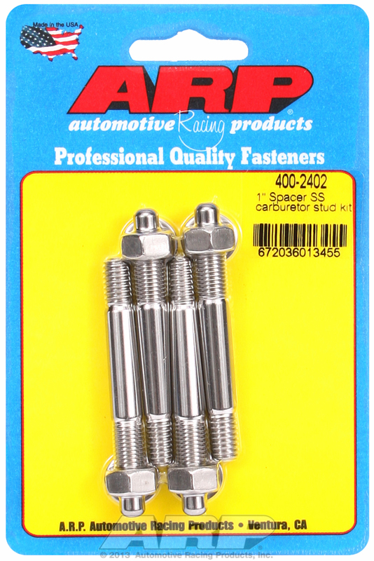 The Best Way To Make Sure That Carburettors Stay Perfectly Sealed To The Intake Is Through The Use Of Arp’s Carb Studs, Which Feature J-form Threads To Resist Loosening From Vibration. There Offered In A Variety Of Heights To Accomodate Most Any Combination Of Carb And Spacer, And They Are Available In 8740 Chrome Moly With A Black Oxide Finish Or Rust-proof Stainless Steel. Special Arp Pro Series Nascar Type Stud Kits Have One Of These Studs Drilled To Facilitate Sealing The Carburettor In The Engine By Race Officials. All Carb Stud Kits Come With Hex Nuts And Washers.
