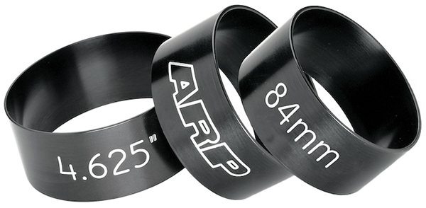 ARP’s ring compressors are CNC machined from 6061-T6 billet tube material and feature a true radius and they are relieved for wire O-rings. Type 3 anodizing is used for long life, and the bore size is prominently engraved for easy identification. Standard stocking sizes from 3.552″ to 4.750″ (SAE) and 75mm to 100mm (metric).