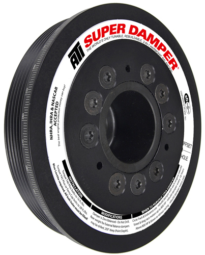 Unlike unbalanced underdrive pulleys,which offer no protection to high performance engines, the tunable ATI Super Damper provides balanced dampening oftorsional crankshaft vibrations. Extensive dyno andon track testing by ATI has proven the Super Damper far superior to all other damper designs and assures efficiencyover stock dampers, resulting in added power and response. If you are looking for guaranteed performance and protection there is only one choice, the only tunable, rebuildable, high performance damper, the ATI Super Damper.