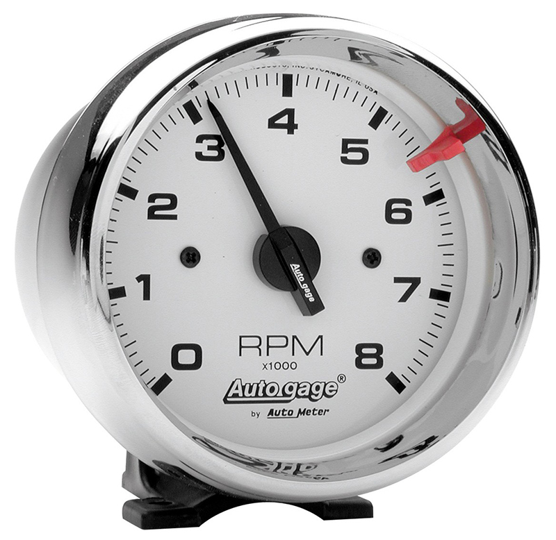 AUTO GAGE 3-3/4″ PEDESTAL TACH8000RPM WHITE FACE, CHROME CUP