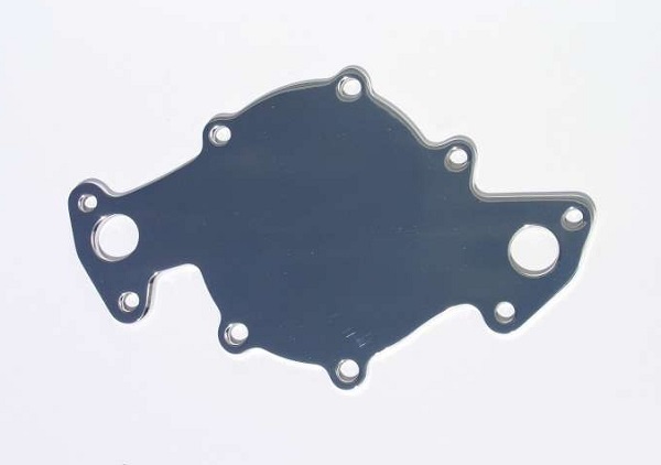 This plate is often used when converting to an electric pump. Many of our pump designs are not able to completely enclose the original water chamber in the cast aluminium timing covers such as are found in the small block Ford application. Use this back plate to seal up the timing cover and successfully complete your water pump installation.