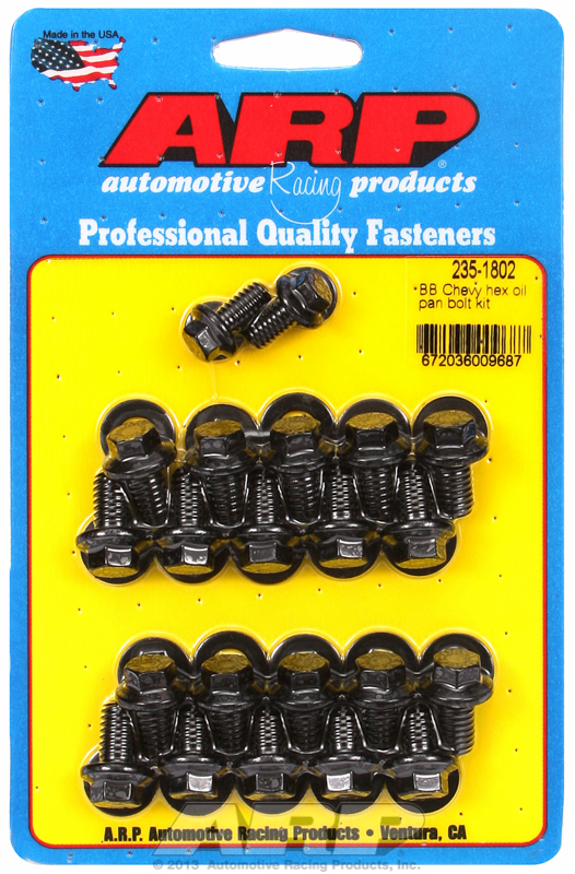 The engineers at ARP spent quite a bit of time developing these highly effective, unique oil pan studs. They’re designed to make it as easy as possible to install a pan and seal it properly. You’ll note that the studs have a radiused bullet nose that serves to locate the pan rails, then allow the nuts to be easily installed without the worry of cross-threading. For those who prefer bolts, ARP’s got you covered, too. Both are available in black oxide finished chrome moly steel or polished ARP Stainless. Also, you may choose between conventional hex style or the space-saving 12-point nuts. The stud kits come complete with a special locking flanged nut, while the bolt kits come with washers.