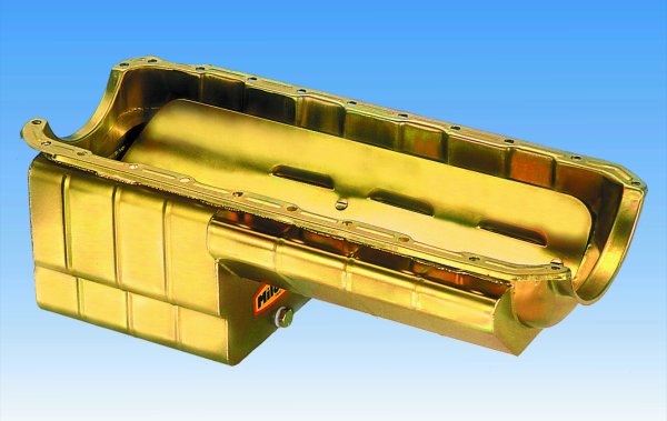 Used in stock framed cars where maximum power output is needed. Designed to fit into cross membered cars such as Camaros and Chevelles with only a reasonable amount of cross member modification. This horsepower style pan incorporates lightweight steel construction with a full length kick-out and full-length louvred tray assembly. Pan will accept a factory large diameter flywheel starter. With most aluminium rods, pan will fit up to a 4%” stroke without modification.