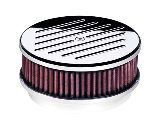 BILLET AIR CLEANER ROUND 6-3/8RIBBED POLISHED W/KN ELEMENT