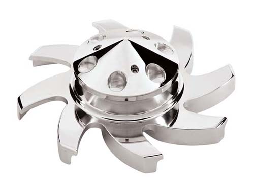 Billet Specialties manufactures the most balanced alternator pulley & fan combo in the industry by machining the unit out of one solid piece of aluminum. This 1-piece pulley and fan combo feature a bolt-on nose cone to hide the alternator nut and washer, stainless hardware included. Fits most GM, Delco, & Ford alternators.