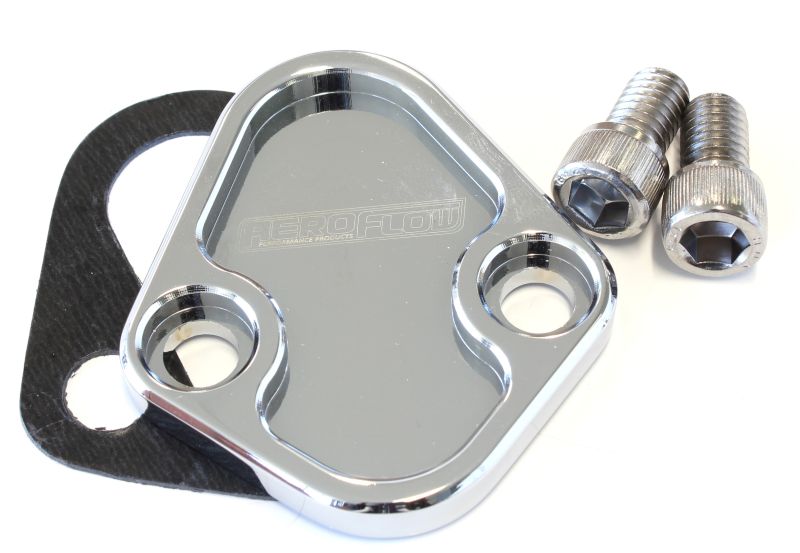 Aeroflow’s fuel pump block off plates are used to seal the opening in the engine block wherever a mechanical fuel pump is not used. Each plate includes stainless steelbolts.