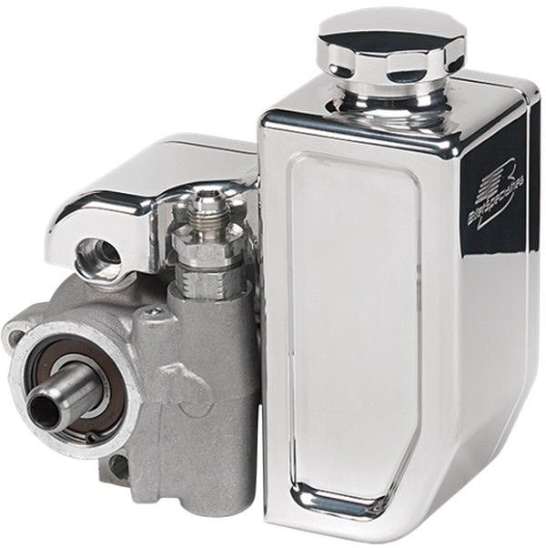 Billet Specialties’ billet bolt-on reservoir is a machining marvel with innovative features such as threaded double o-ring reservoir and hose attachmentsproviding secure leak-free service. Precision machined internal baffling eliminates foaming and is topped off witha vented notch-grip.