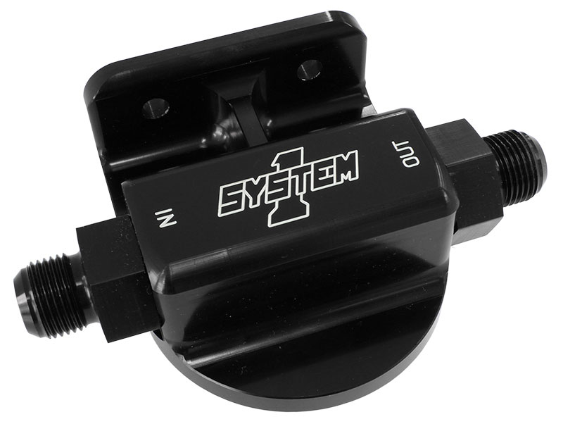 Two styles are available to accommodate either left-side or right-side inlets for AN-8, AN-10 or AN-12 lines. They are CNC machined from 6061-T6 billet aluminium and come black anodized only. Accommodates System 1’s 3-3/4″ and 4″ diameter filters with 1″ -12 threads – no threaded adapters needed. Mounting holes are 5/16-18 on 2″ center.