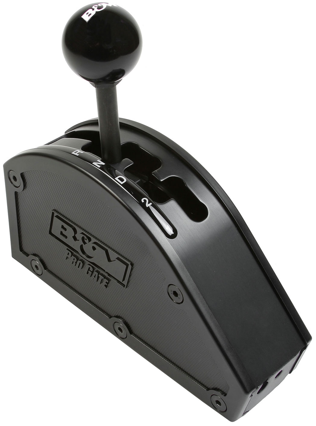 The B&M Pro Gate shifter is an externally gated race shifter for GM 3-speed automatic transmissions. The compact and lightweight design features a 10-gauge black oxide coated 304 stainless steel base with a heavy-duty 303 stainless steel shift pin for longevity and bullet-proof performance. The 1016 steel shift stick includes a black B&M logo shift knob for shifting duties while the external gate plate is constructed from black oxide coated 11-gauge 304 stainless steel for durability. The 3-speed gated forward shift pattern features a staggered shift pattern with positive stops between each gear for easy and precise shifts. Other features include thick injection-molded nylon side covers featuring a knurled texture with the B&M Pro Gate logo on both sides. The covers are removable for access to the virtually maintenance-free shifter sub-assembly and will not gum up with dirt affecting shift performance, which is ideal for Off-Road racing. The rear exit cable design includes a black 5-ft Super Duty race shifter cable along with a cable bracket, shift lever, and all necessary hardware for a straightforward installation. Includes Lifetime Limited Warranty.