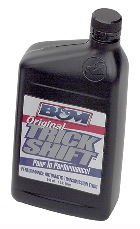 Trick Shift was originally developed by B&M for racing applications. It’s become so successful that it’sthe most popular high performance fluid on the street also! Not an additive, this is the best performance ATF available! A scientific blend of foam inhibitors, pressure agents and shift modifiers that will provide extended transmission life anddrastically improved shift feel. Trick Shift is the easiest way to measurably improve the transmission performance of your vehicle. Trick Shift works with all automatic transmissions when afirmer shift is desired. Pour in Performance is not just a catchy phrase – it’s reality! It can be mixed with stock-type transmission fluids, however to attain maximum improvement you shoulduse Trick Shift exclusively. Ideal for towing, light trucksand RV applications as well asracing. Not recommended for electronic controlled transmissions.