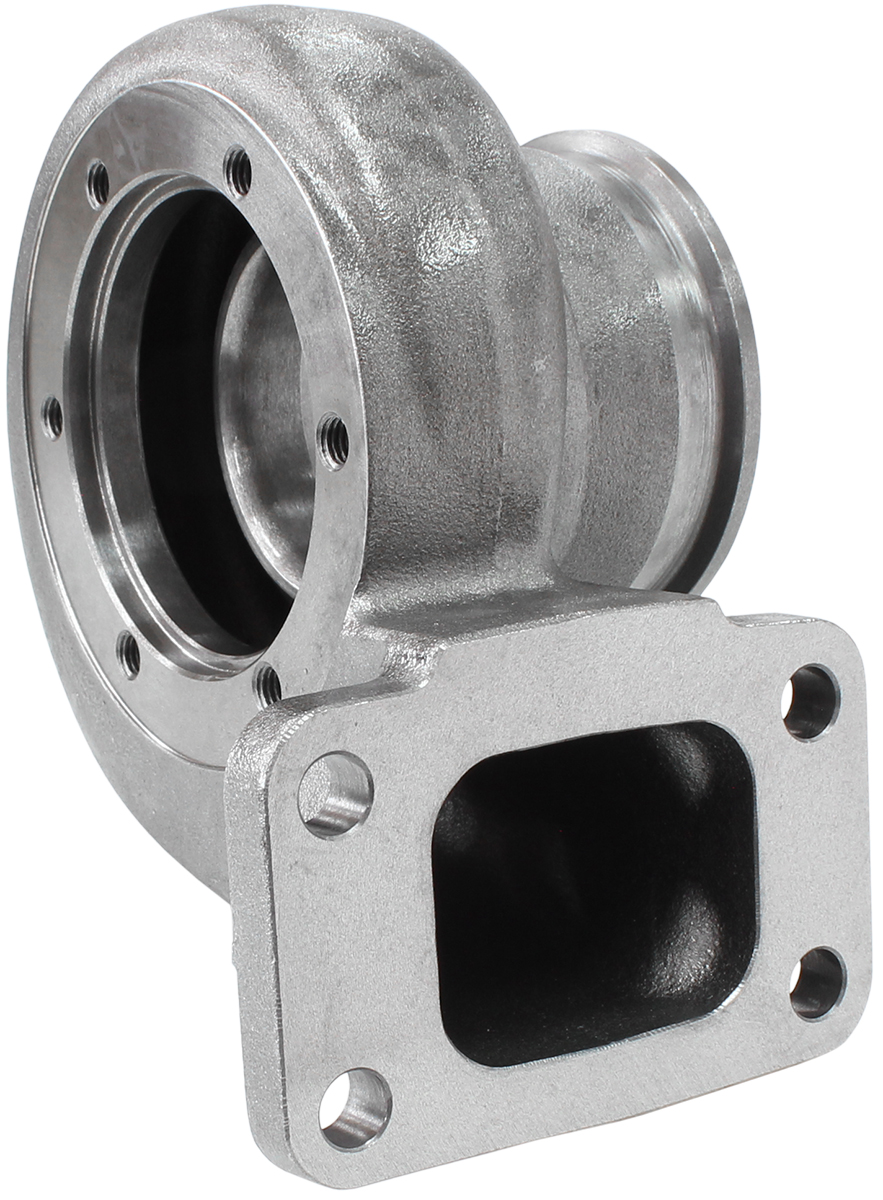 Aeroflow Performance offersa variety of replacement turbine rear housings for their entire range for Boostedseries turbochargers. You can choose to option for a smalleror larger A/R ratio. This willallow you to fine tune depending on your application for engine configuration and driving conditions. Available in many different turbine inlet and outlet flanges to fit most exhaust manifolds such as T25/T28, T3, T4 ,T6 and V-Band and Exhaust downpipes such as 5 bolt and V-band. Turbine housings can be replaced on most turbos easily via mounting bolts or V-bands and a few minutes of time. They can be clocked 360 degrees to just about any position needed.
