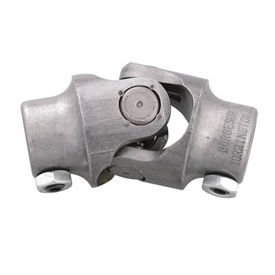 BORGESON u-joints are machined on state of the art CNC equipment from solid billet steel, stainless steel or aluminium Any of our 4 Double D (a round shaft with two flats) sizes, 14 different spline size yokes, and the ’94 and later Mustang “V” style can be combined to mate components from many different manufacturers. They operate at angles up to 35°. For example, with our components, you could easily connect a GM column to a new Mustang rack and pinion or a Ford column to a Saginaw box. Similar to OEM u-joints, the staked needle bearing caps prevent loosening and adjustment malfunction.