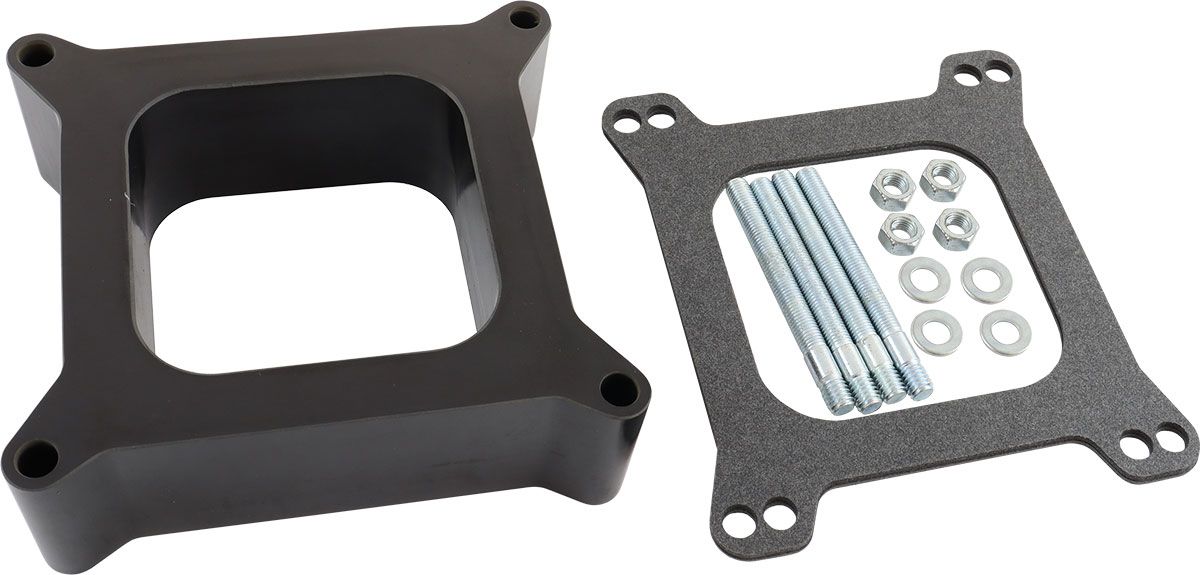 Aeroflow phenolic carburettor spacers improve air/fuel distribution and reduce the fuel temperature for a denser fuel mixture, reduce vapor lock, and add additional plenum volume to increase engine performance. They help with linkage clearance on aftermarket or custom throttle cable setups.