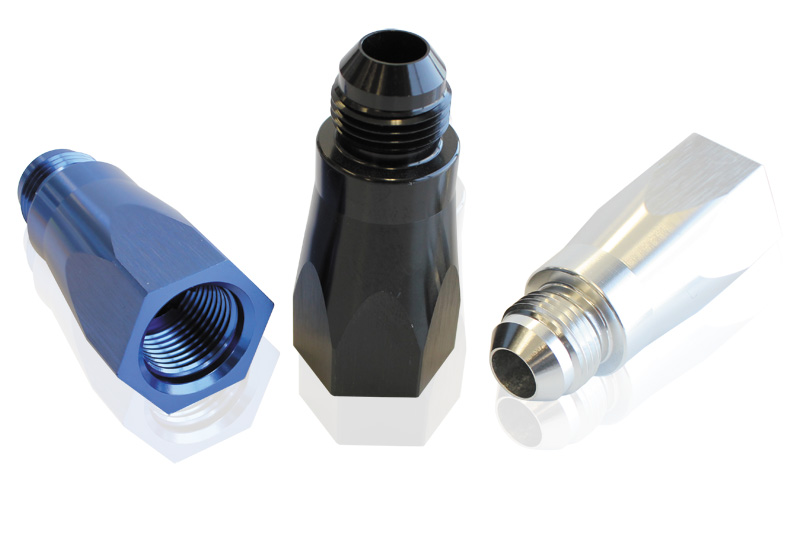 This inline check valve features a Male AN fitting andFemale ORB fitting in either -6 or -8 sizes. The valve pressure is adjustable with the internal hex from 3-5psi. Flow runs from the male end tothe female end.
