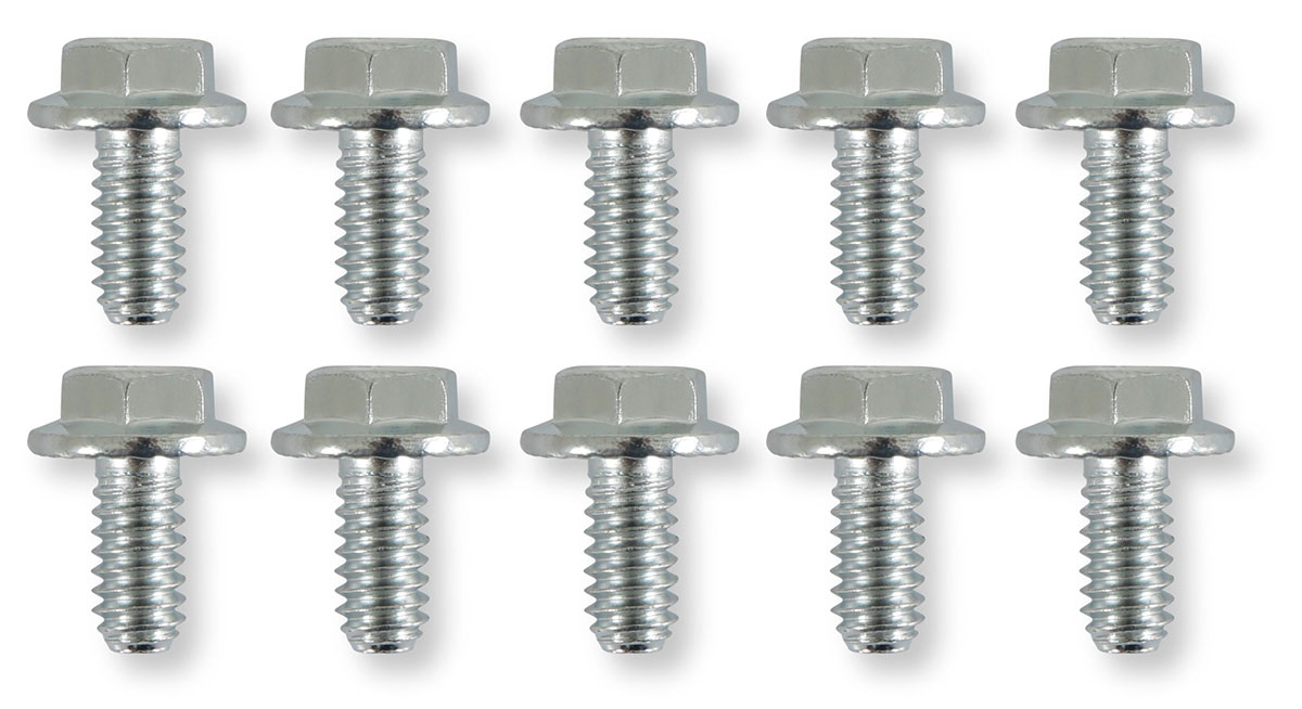 The special smaller-than standard hex head is ideal for tight spaces. Because of the hex flange head design, it will not fall back into the socket wrench, allowing for easier installation. Special under head serrations prevent loosening and the wide flange head distributes uniform clamping pressure for an Ultra gasket seal. Bolts are zinc plated, Grade 5.