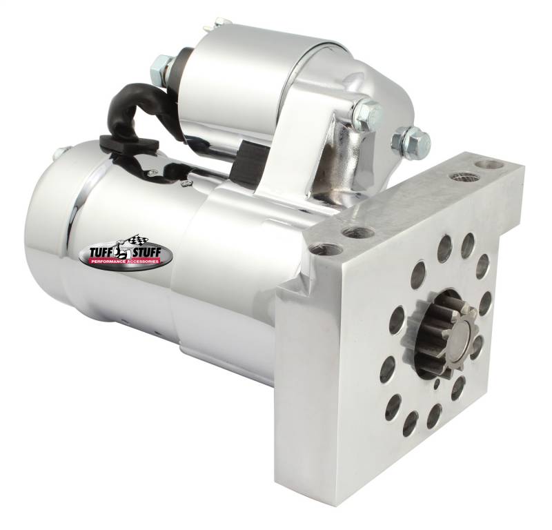 Tuff Stuff starters are hand made from premium qualitynew components – not remanufactured – and are quality built in USA. Most Gear Reduction style starters,which are considerably smallerthan the OE starters, incorporate a mounting block that can be indexed to gain additional clearance. Startersinclude mounting bolts and shims where applicable. Ideal for high horsepower muscle cars, hot rods, trucks and daily-drivers. Finishes include chrome plated, zinc plated and powder coated.