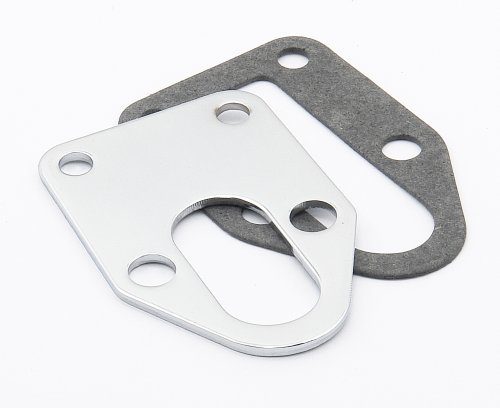Mr. Gasket announces a fuel pump mounting plate to dress up the fuel pump area of your engine. This chrome plated mounting plate, for the 265-400 cu. in. Chevrolet small block engine, is ideal for mounting a stock OEM pump. The mounting plate is precision cut to cover the stock fuel pump opening and is complete with gasket