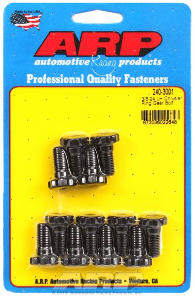 The tremendous shock loads generated at launch by most any drag racing vehicle equipped with today’s sticky tire compounds or the acceleration and deceleration of oval track cars put considerable strain on the ring gear. For this reason, the fastener experts at ARP have developed the Pro Series ring gear bolts. They’re forged from premium grade 8740 chrome moly steel and are heat-treated to a nominal rating of 190,000 psi tensile strength. Specially hardened, precision-ground washers are included where required. Available to fit most any ring gear setup ranging from popular 9″ Ford GM 10- & 12-bolt rear ends to the beefy Strange differentials found in Top Fuel and Funny Car applications.